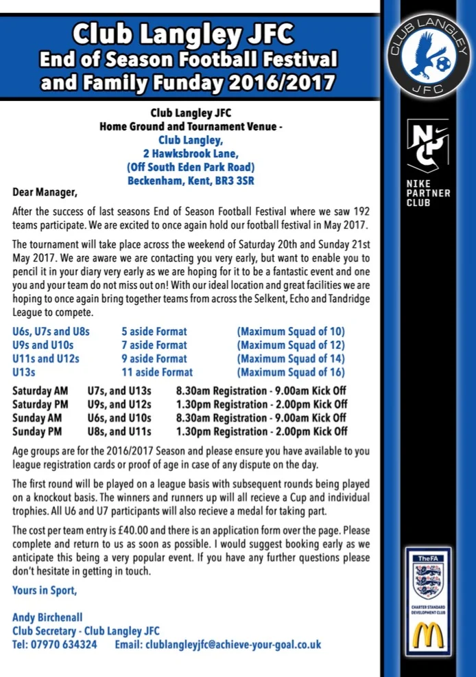 Club Langley JFC End of season Football Festival